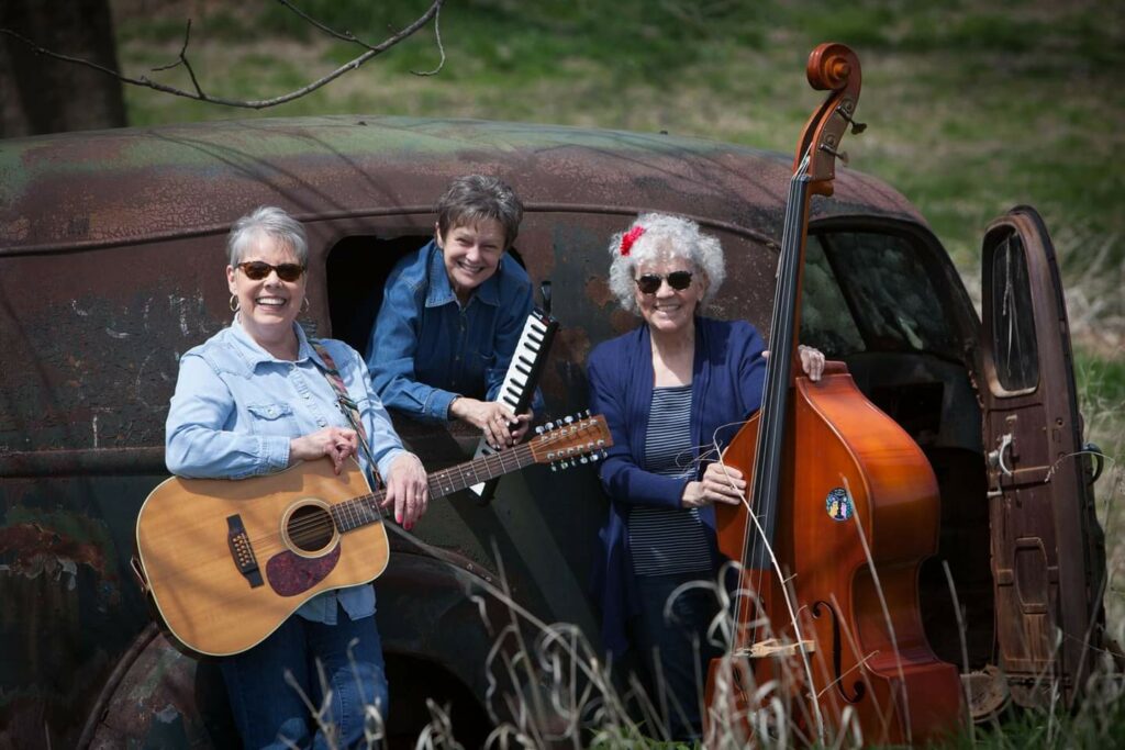 THE CHURCH LADIES, a harmony-based, vocal trio, will delight you with polished performances of folk, country, gospel, and old-time pop/rock. Playing accoustic instruments, Joan Nelson (guitar), Mary Louise Stahl ( mandolin, banjo, upright bass), Cindy Carlyon (melodica, upright bass), THE CHURCH LADIES are an energetic and humerous ensemble. CHURCH LADIES shows are tailored to individual communities and often add a tag-line to their name to indicate unique event qualities. We recently performed for THE NATIONAL DAY OF THE AMERICAN COWBOY as “THE CHURCH LADIES: UNBRIDLED” and “THE CHURCH LADIES: UNSUPERVISED” at a local street fair, hopefully indicating our unrestrained enthusiasm to try out new material! Performance selections include songs from many different genres. You will enjoy easy banter with family friendly jokes and often Q & A about writers and performers. An 8 year old fan created an art piece during one of our shows entitled “Girl Band Rocks”. We hope we can continue to inspire more young women and everyone to pursue their musicianship, wherever it leads. Hailing from 3 rural Kansas communities, our hearts are steeped in the prairie as we travel our home state.